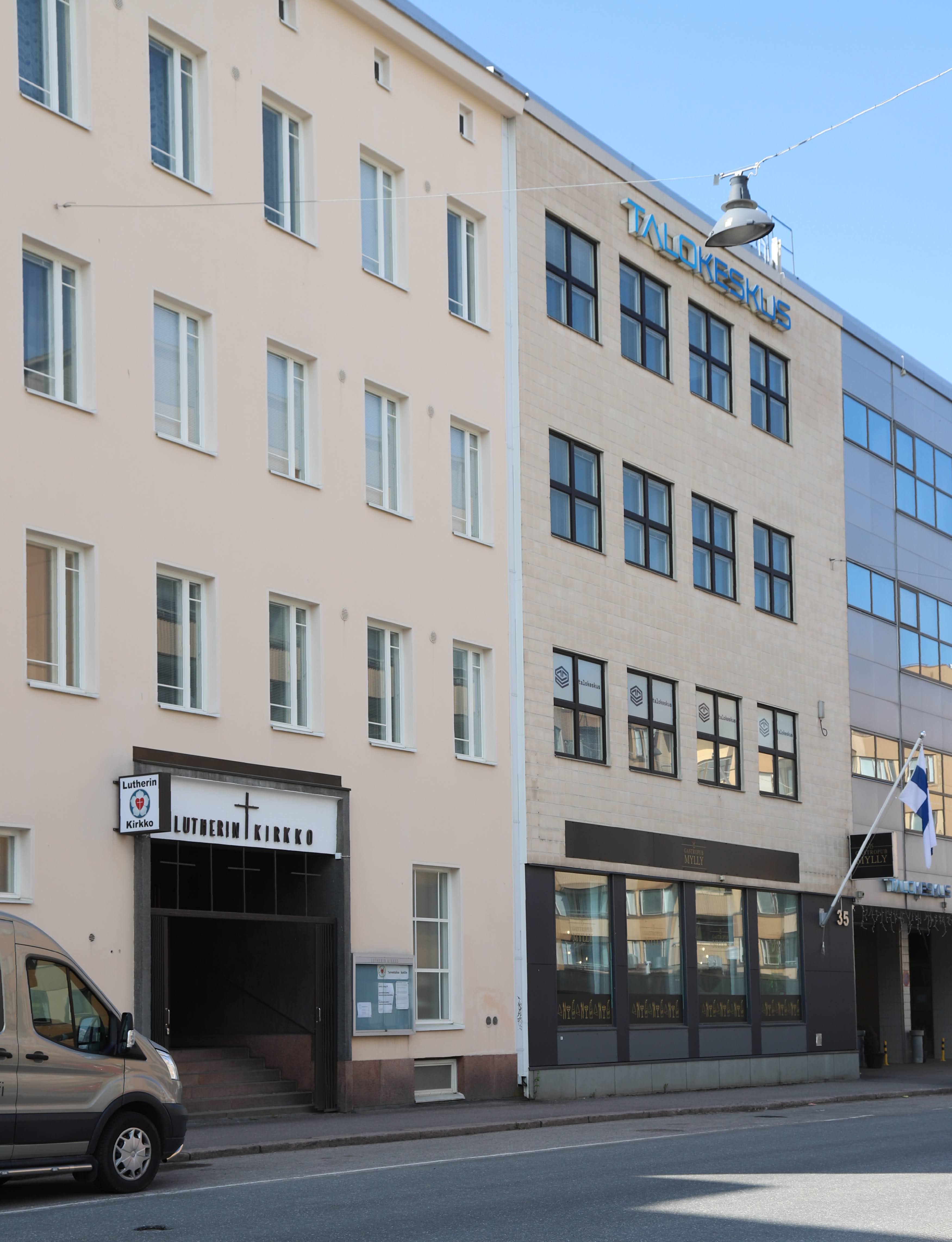 Esteetön sisäänkäynti löytyy sisäpihalta. Pyydä apua sen käyttöön suntiolta, pastorilta tai muilta paikalla olevilta.